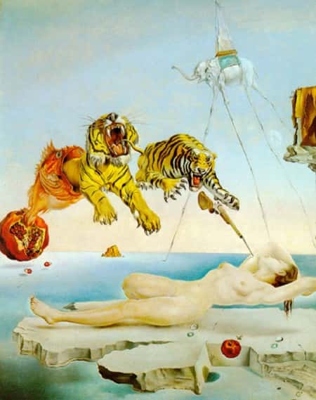 A famosa pintura acima de Salvador Dali explica exatamente este conceito. O seu nome é “Sonho Causado Pelo Vôo de uma Abelha ao Redor de Uma Romã um Segundo Antes de Acordar”.